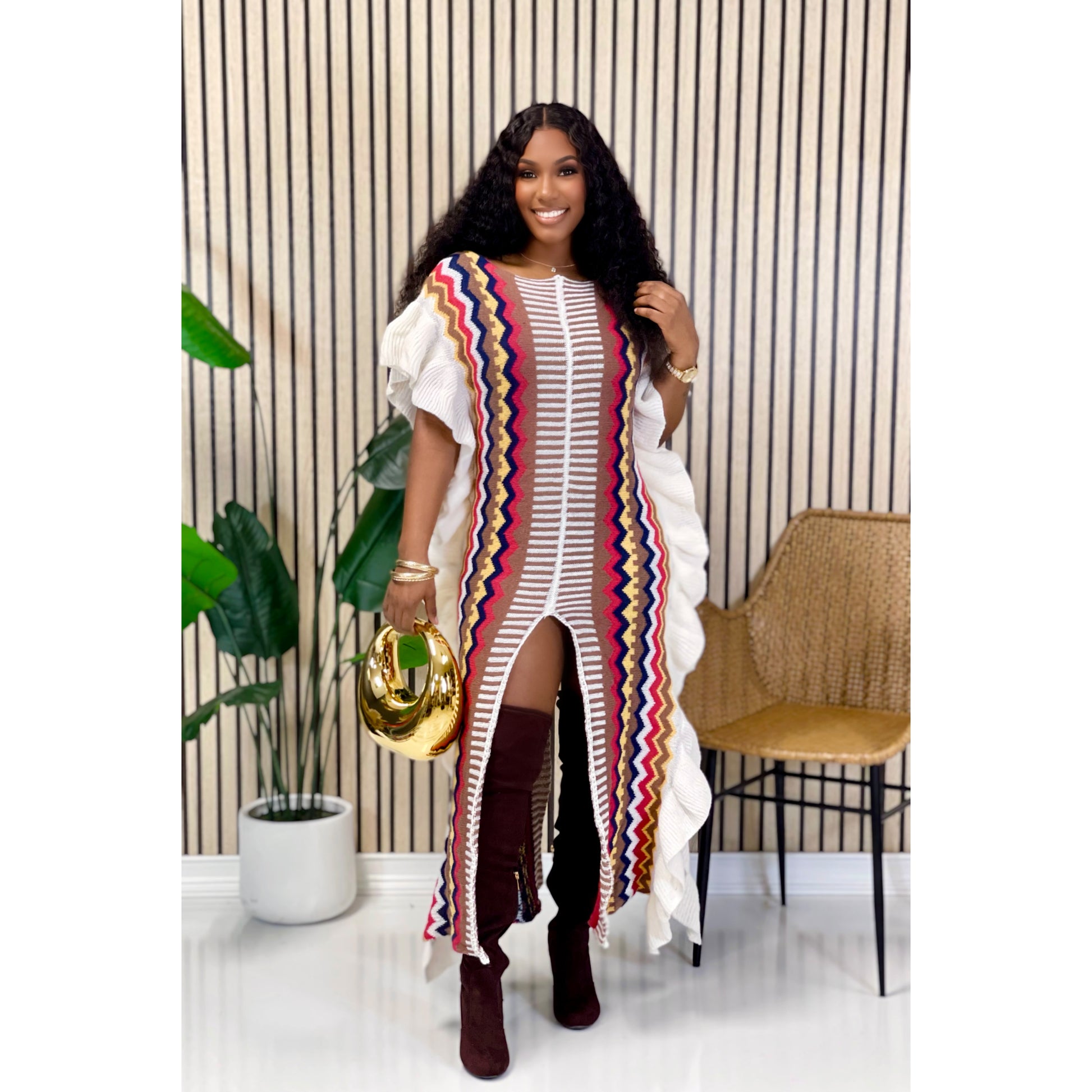 Knit Print Maxi Dress Front and Back with Slit -Side and back with Slit Detail