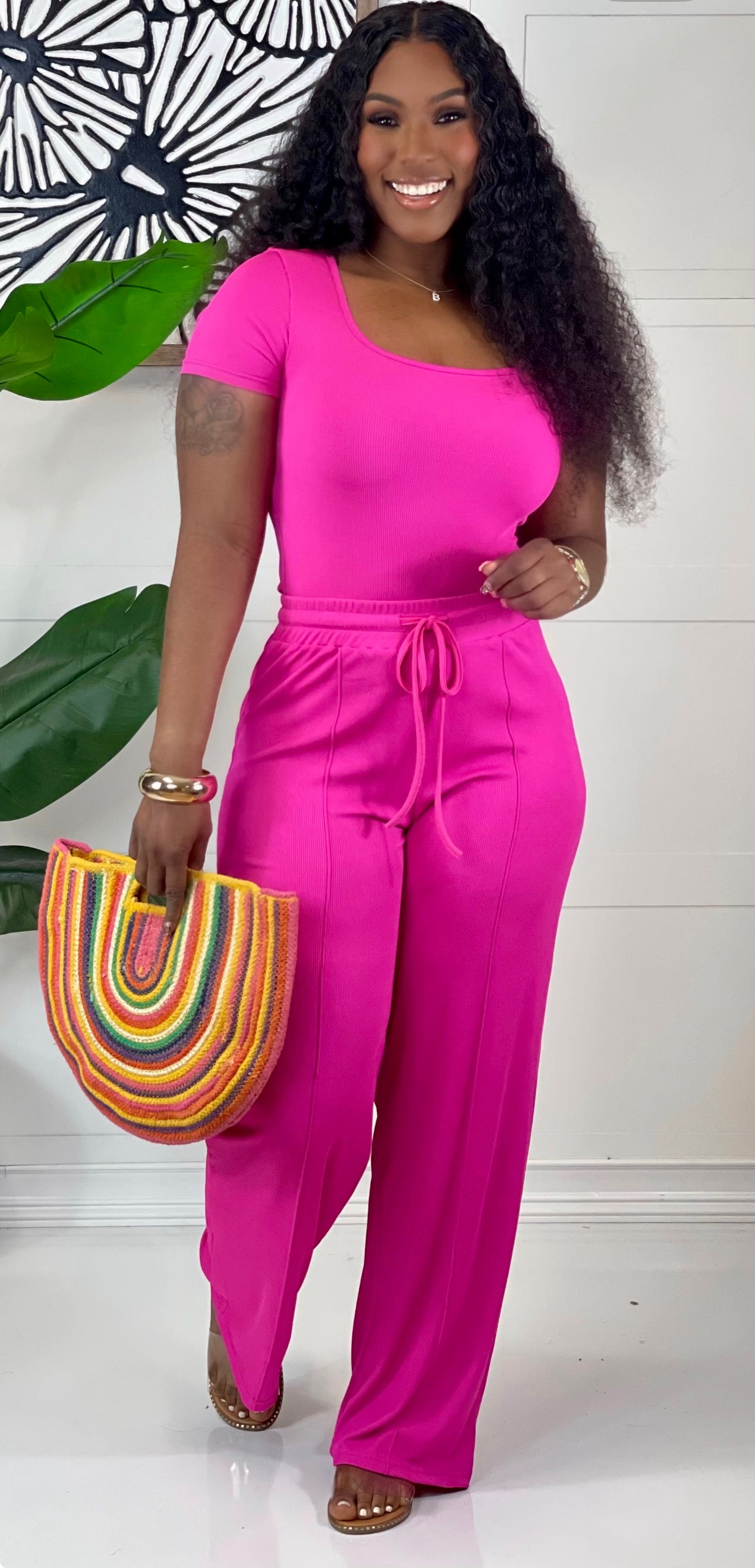 RIBBED BODYSUIT AND PANTS SET SQUARE NECK BINDED DETAILED WIDE LEG MODEL IS WEARING US M SIZE.