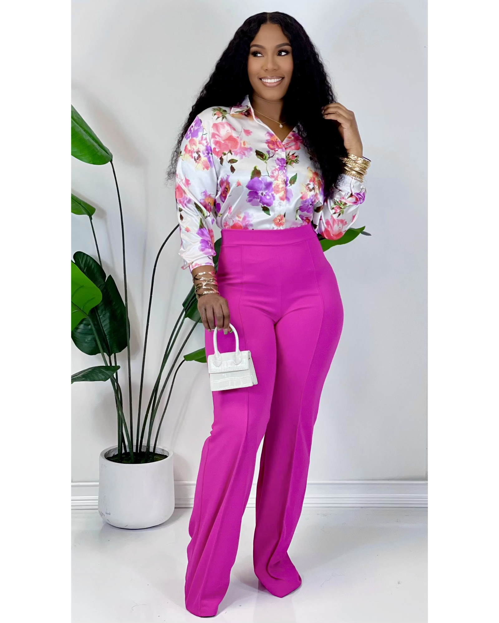 Solid, full length Pants in a flare style with a high waist, and wide legs