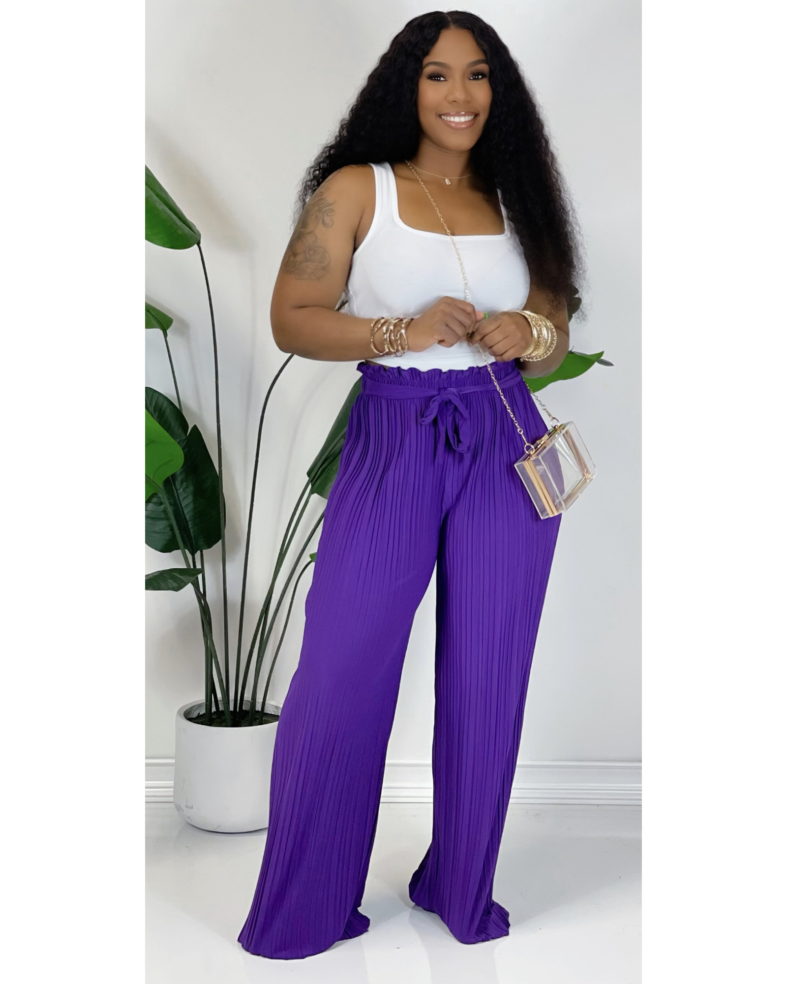 Self Tie Wide Legs (Purple)