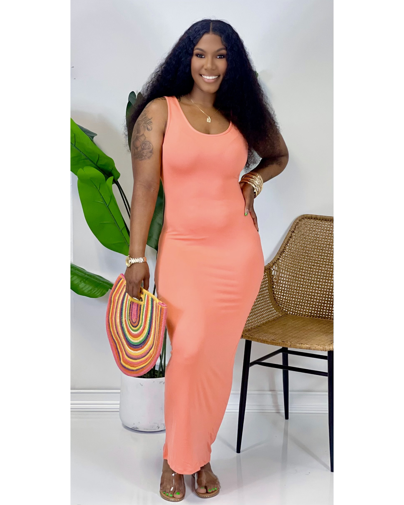 Solid basic maxi dress - Soft & Light weight High stretch Jersey - Women's maxi dress with very soft stretchy fabric. It is really comfortable and fits your body perfectly. Sleeveless and round neck style makes you more slim and longer. Perfect to wear in casual, daily, and at home. 95% of customers are satisfied with its softness, fit, and diverse colors.
