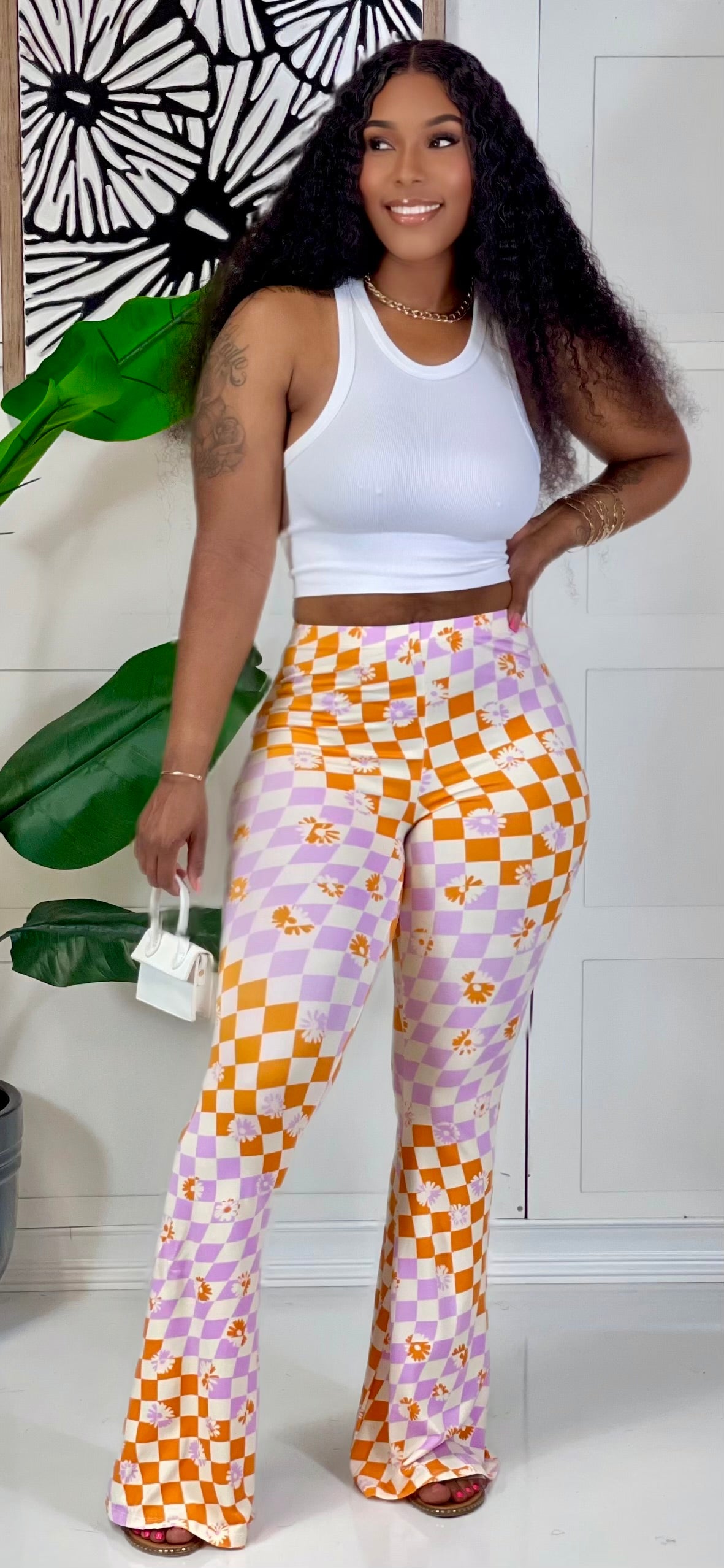 95% Polyester 5% Spandex BOHO BANDANA PRINTED FLARED LONG PANTS WITH WAIST BAND
